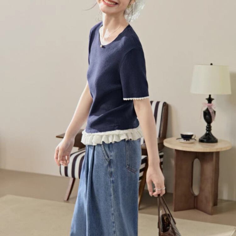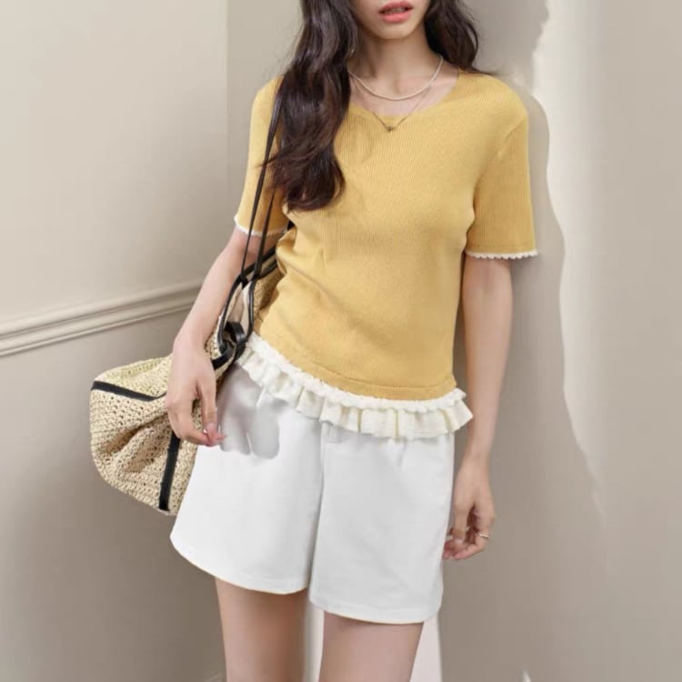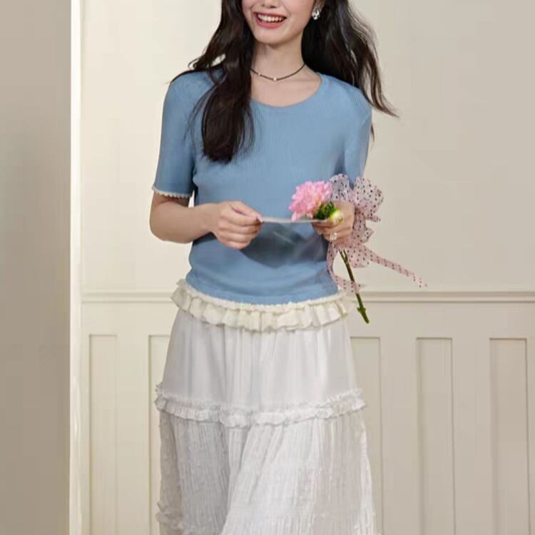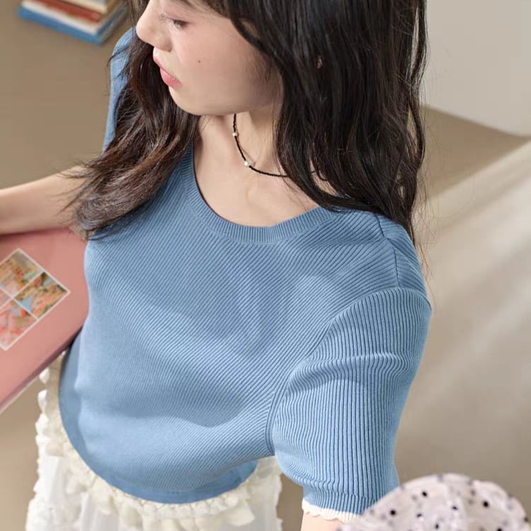 Ruffled ribbed knit【4col】00071