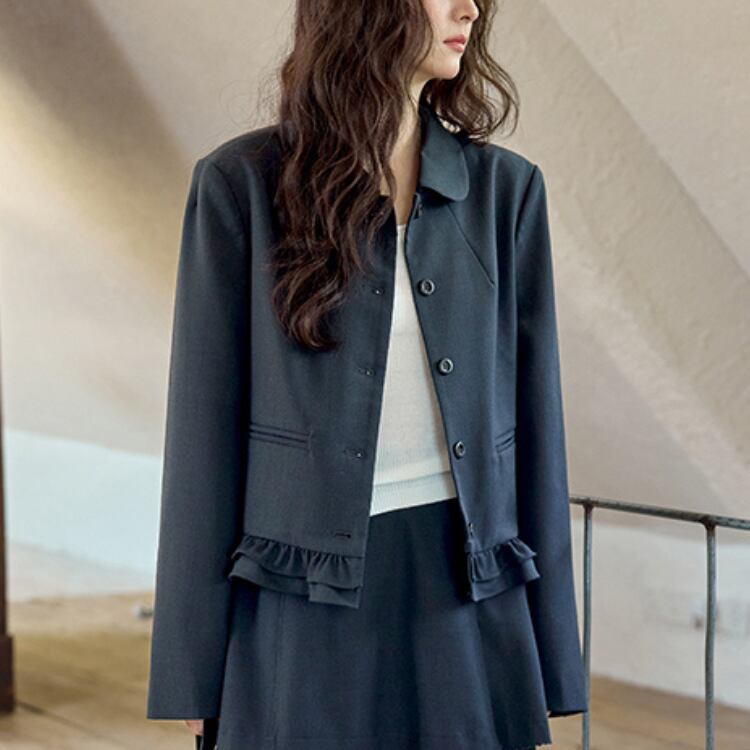 Round collar ruffle jacket 00158