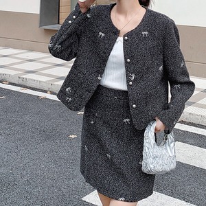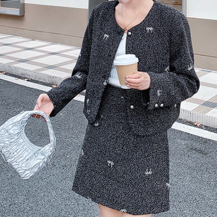 Collarless ribbon jacket and skirt【2set】00195