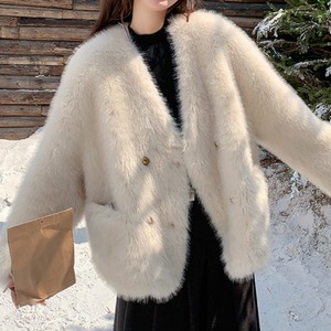 洗練された大人の女性にぴったりの、ダブルブレストファーコート。
