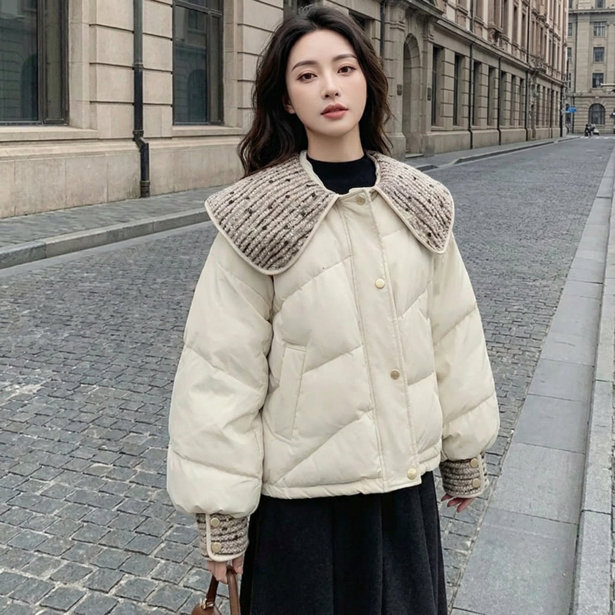 Peterpan collar sequin down jacket 00272