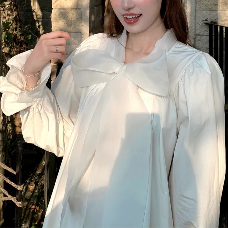 ボウタイが顔周りを華やかに演出し、全体の印象を明るくします。