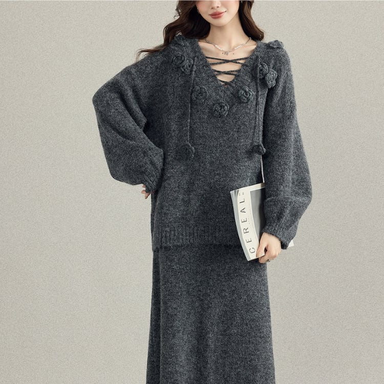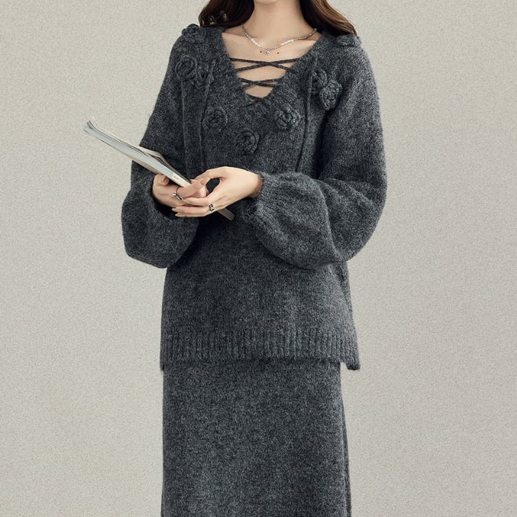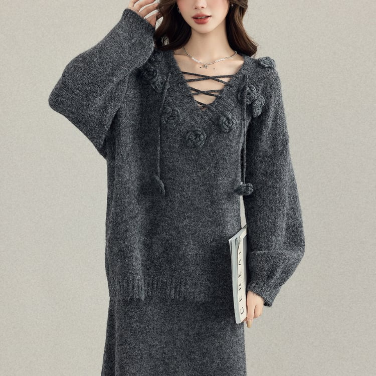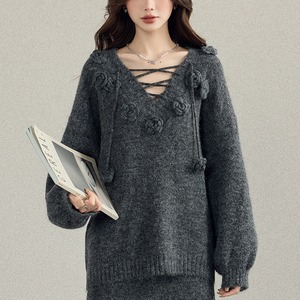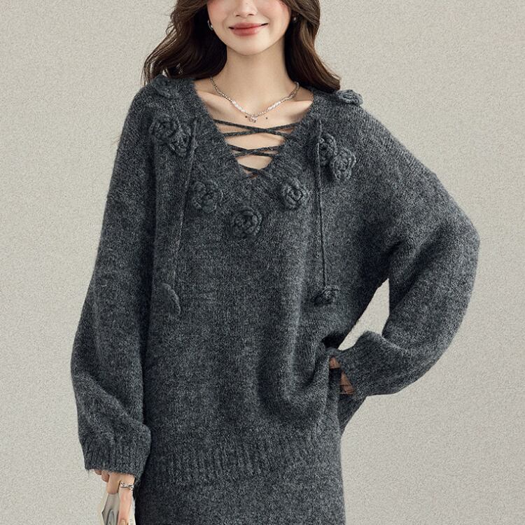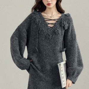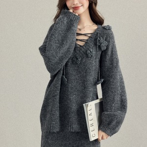 レースアップと同色のフラワー装飾がさりげないアクセントを添え、カジュアルながらも女性らしい印象を与えます。
