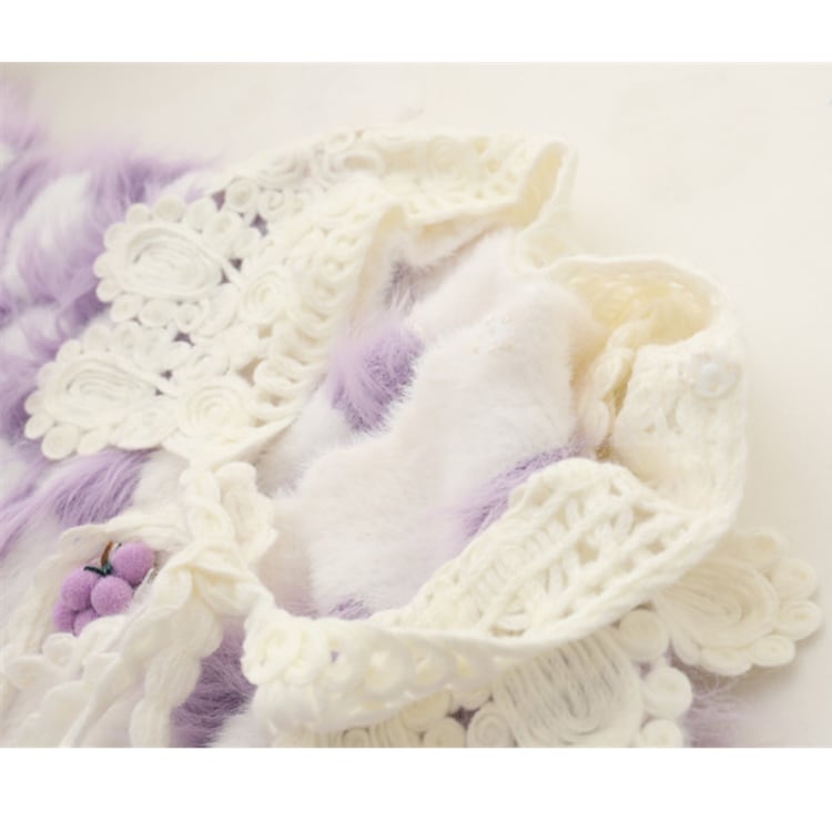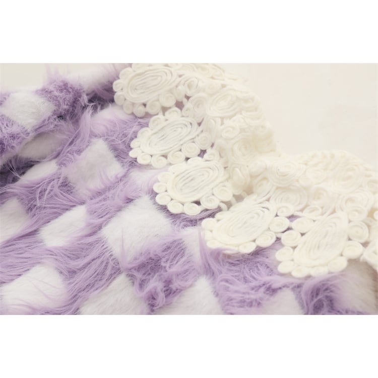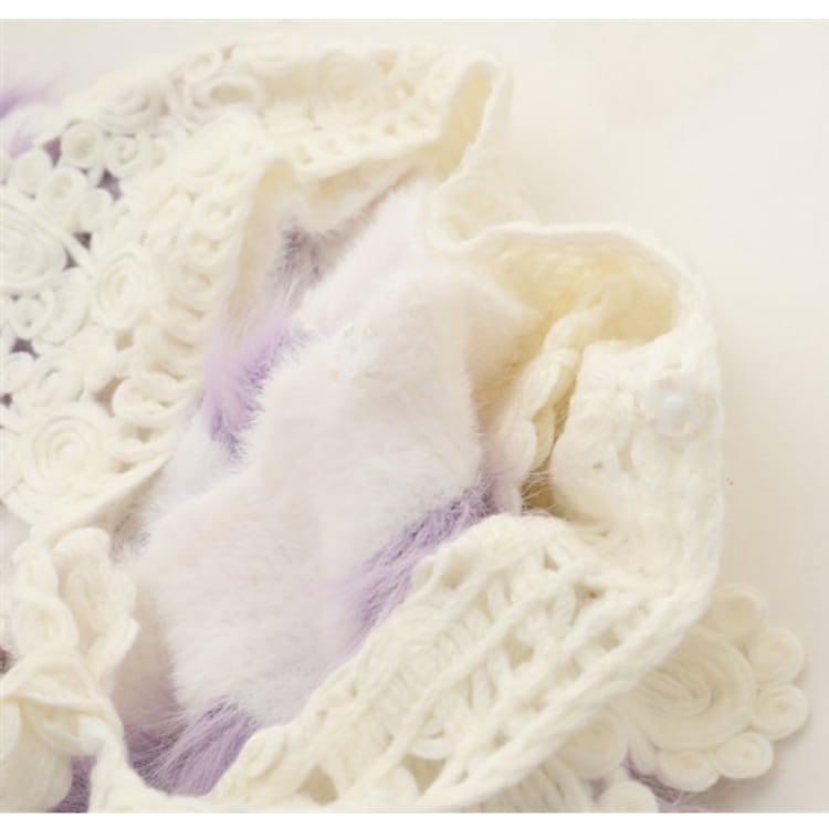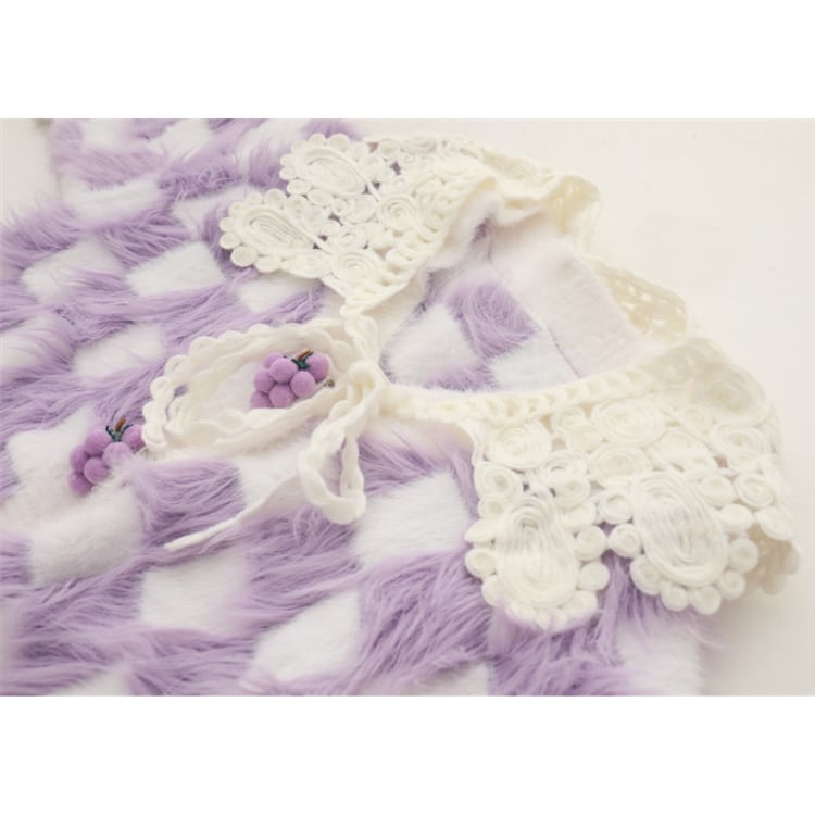 レース襟が特徴的な、チェック柄のニットカーディガン。