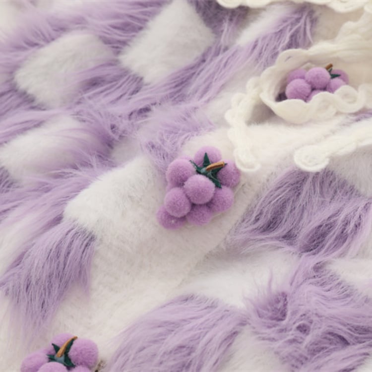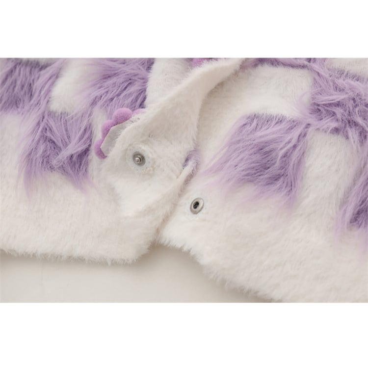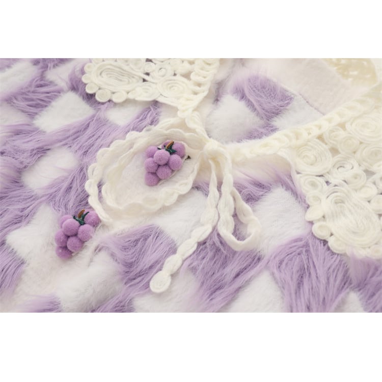Grape button block check knit cardigan 00297