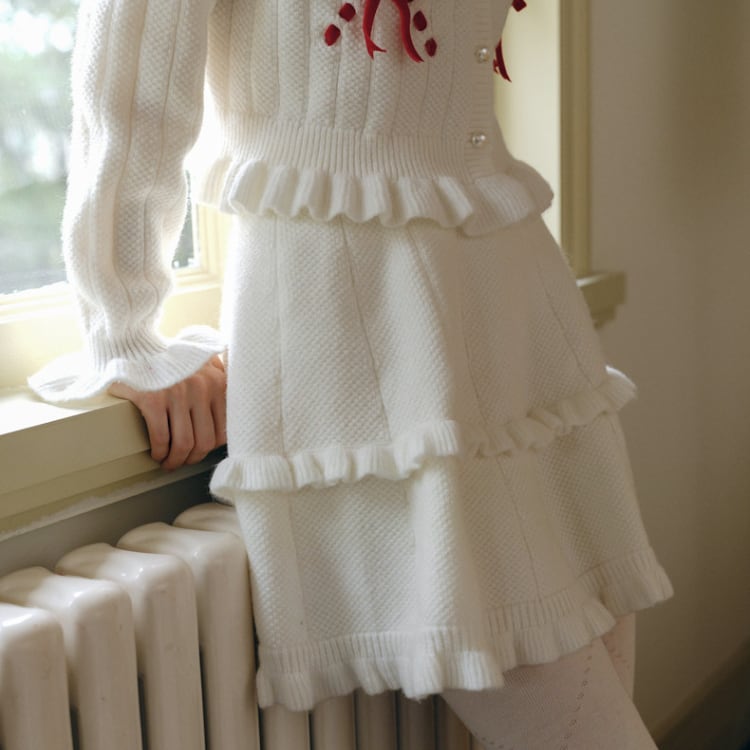 Two-tiered ruffle knit skirt 00305