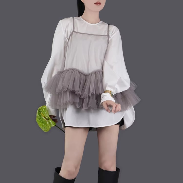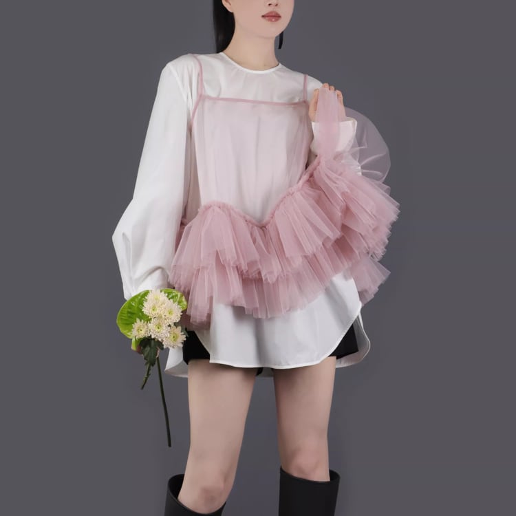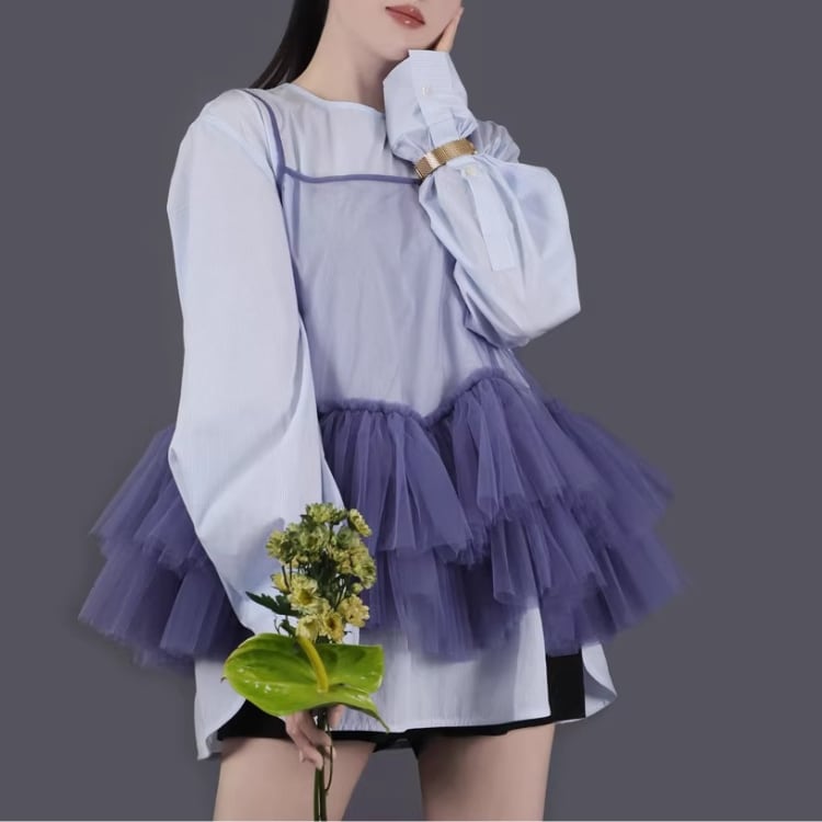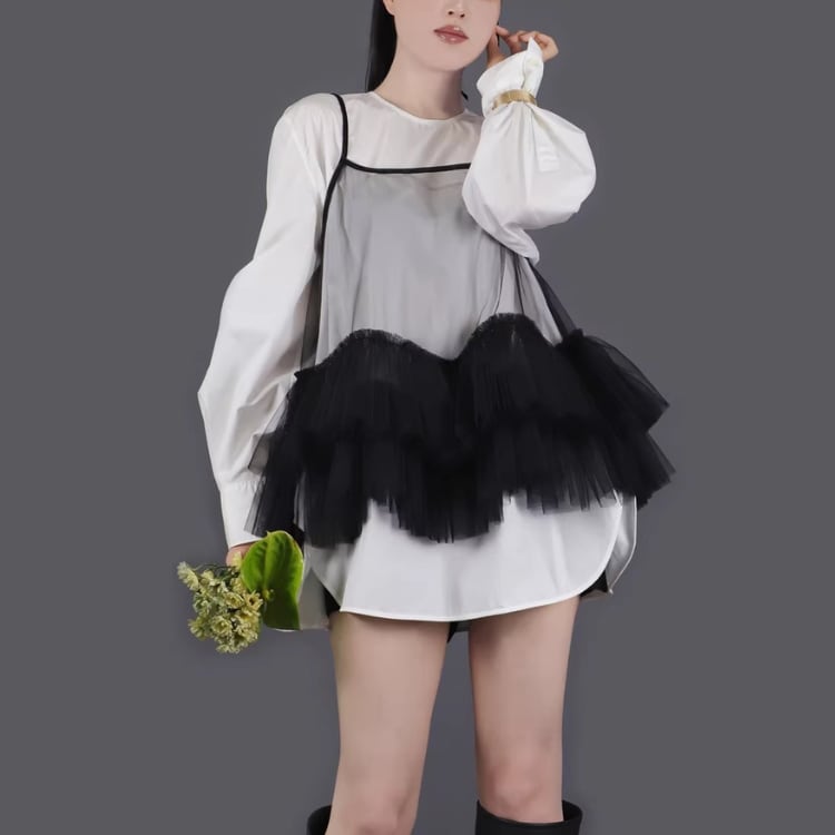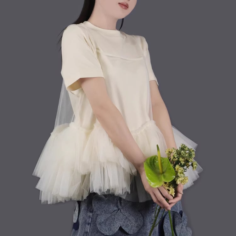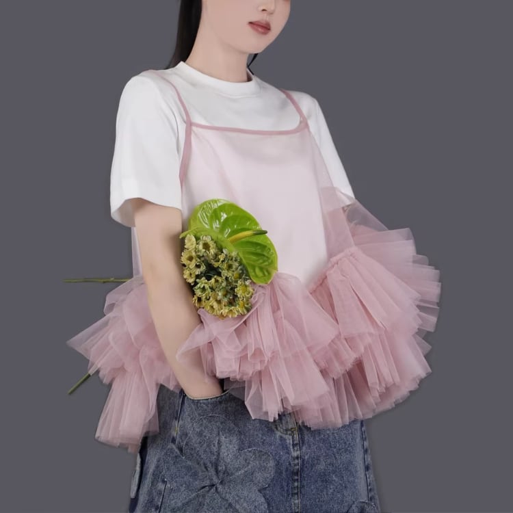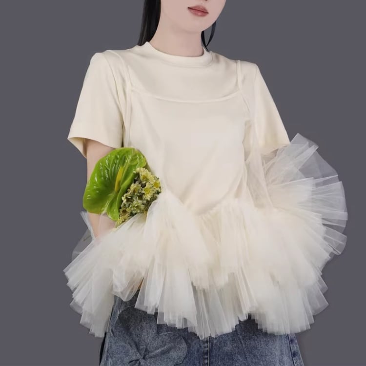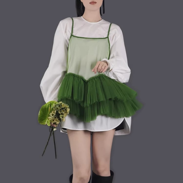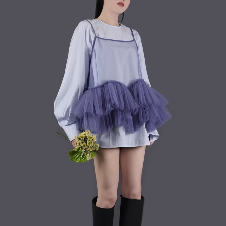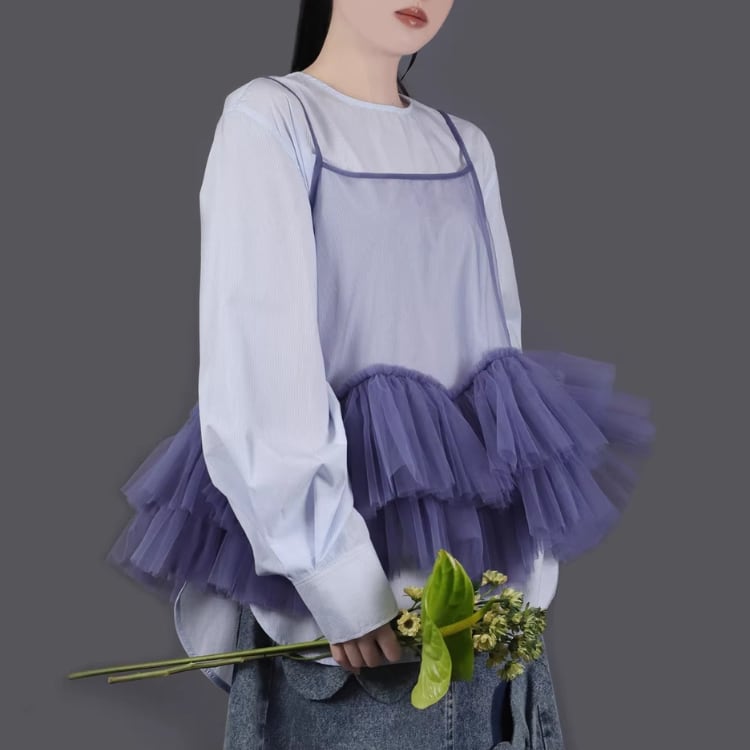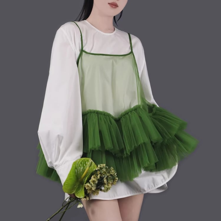 Mesh frill camisole【7col】00325