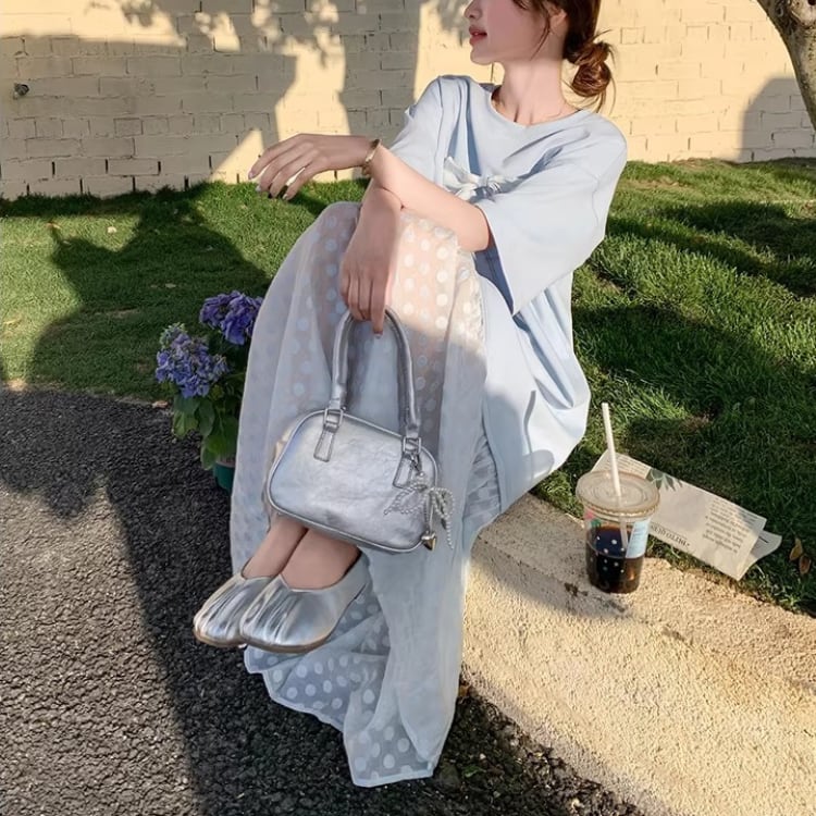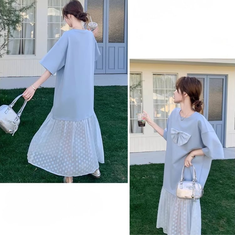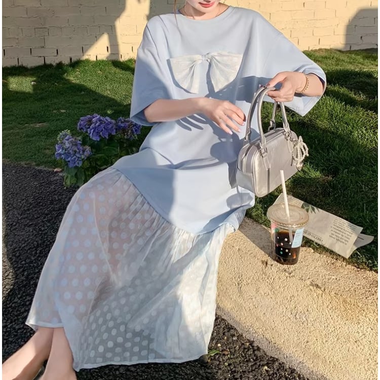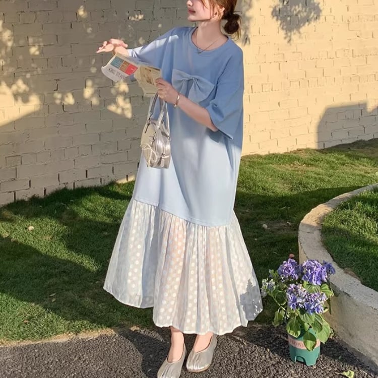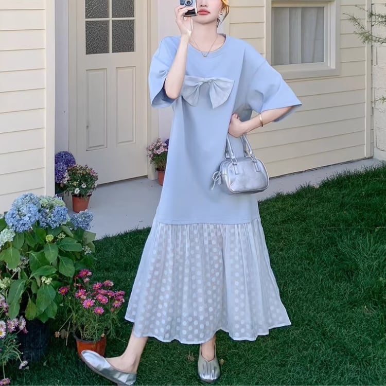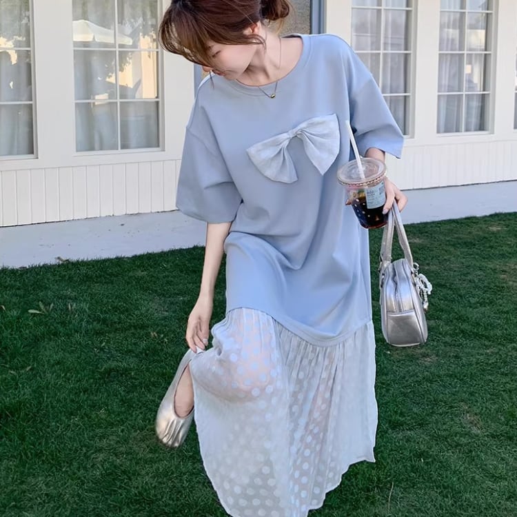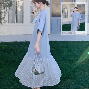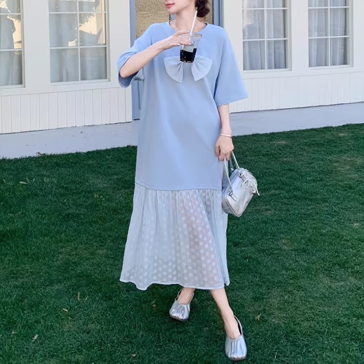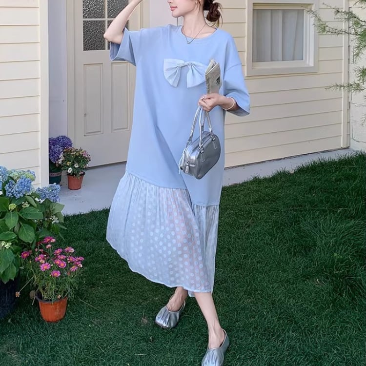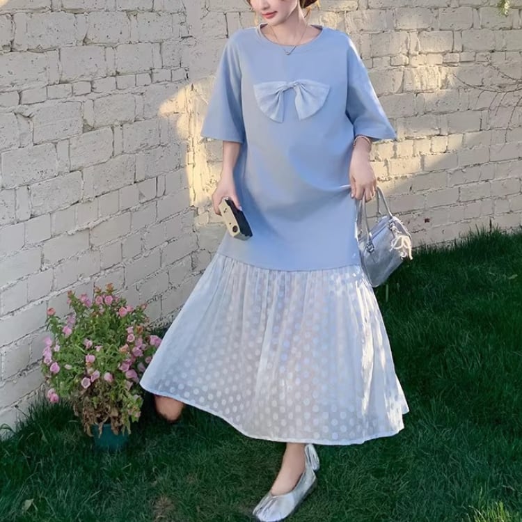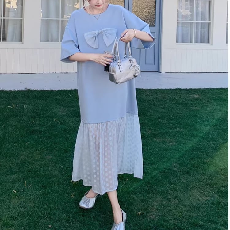 ドット柄レースの切り替えが、シンプルながらも遊び心のあるデザインです。