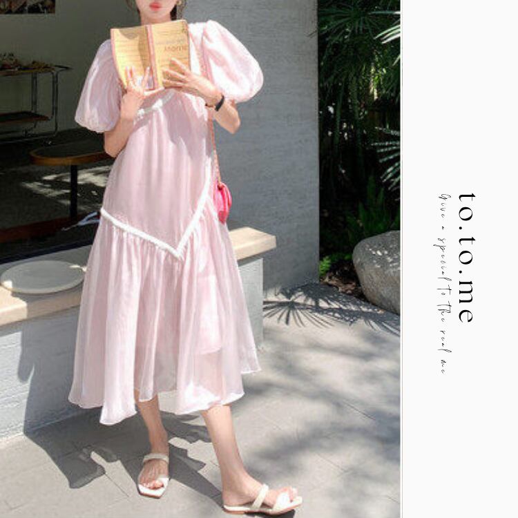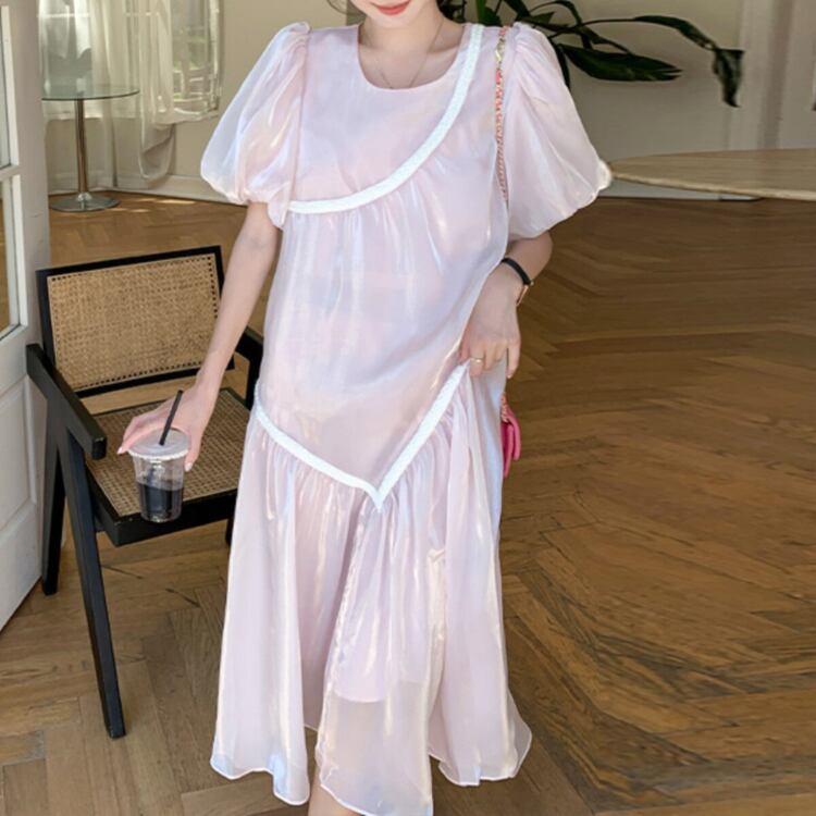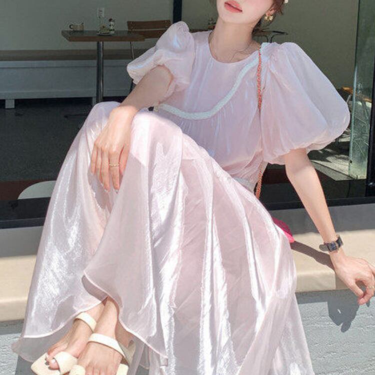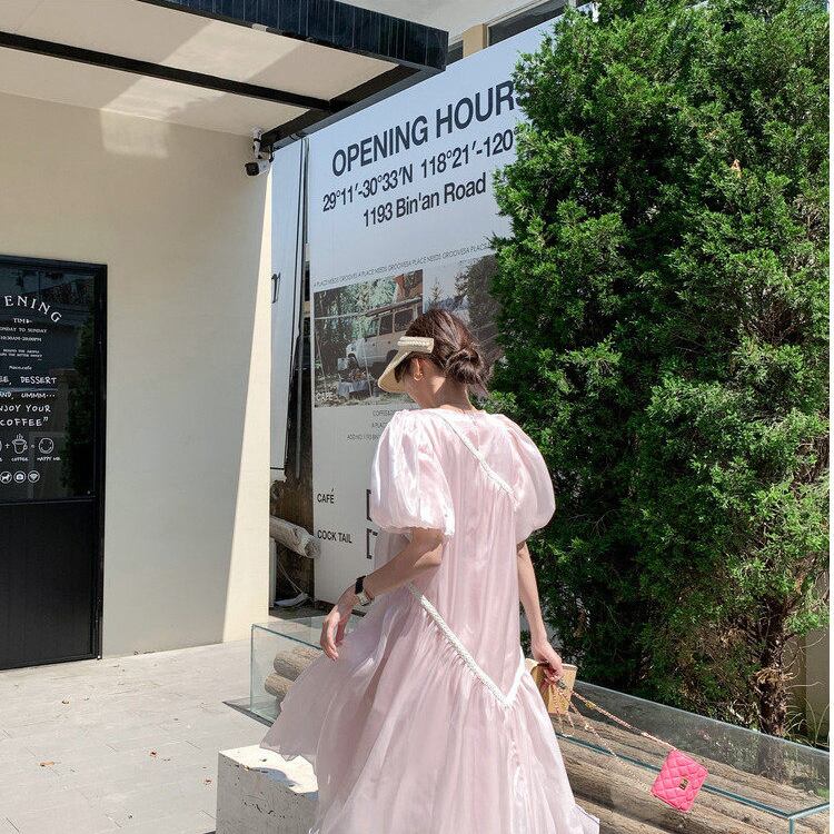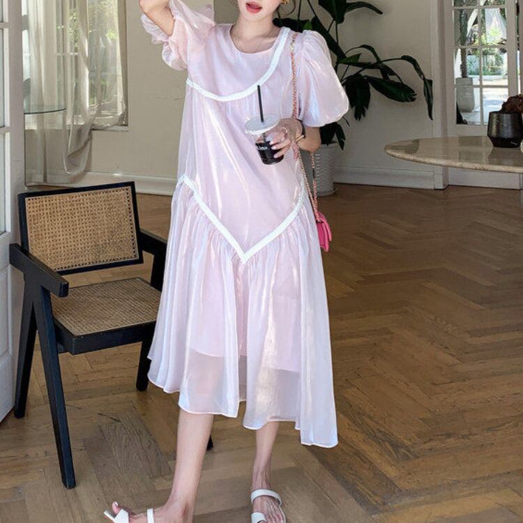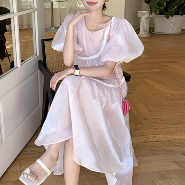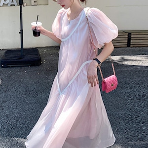 Mesh puff sleeve dress 00355